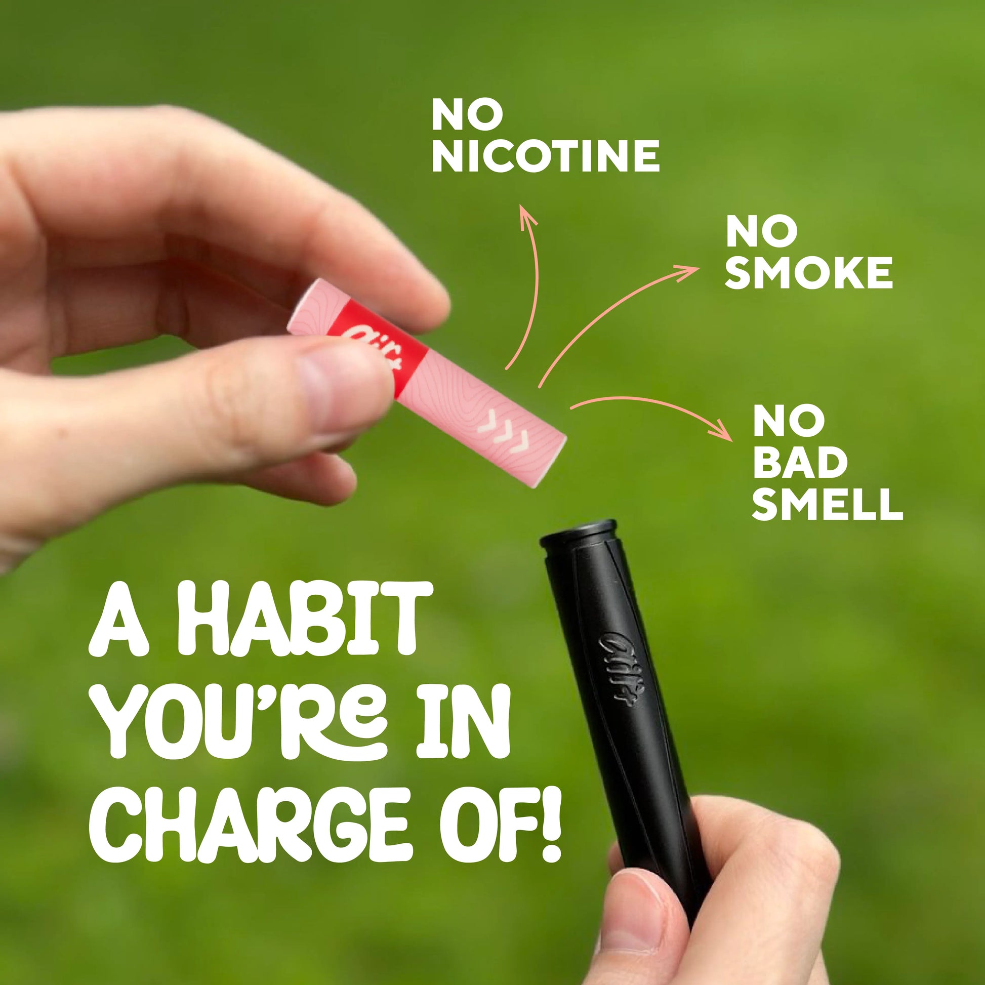 Use it again and again. It pairs with our CORE FLAVORS — small inserts that add a gentle taste to your breath. No charging. No buttons. A simple way to pause and reset. Lieto atkal un atkal. Tas sader ar mūsu CORES garšām, kas piešķir elpai vieglu garšu. Nav jāuzlādē. Nav pogu. Vienkāršs veids, kā apstāties un atjaunoties.